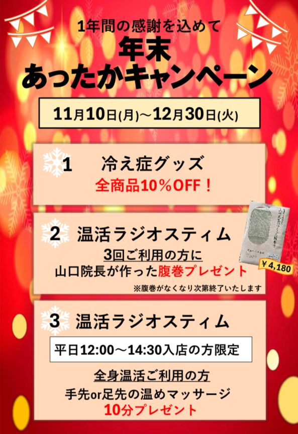 今年1年間の感謝を込めまして「年末あったかキャンペーン」のご案内です。